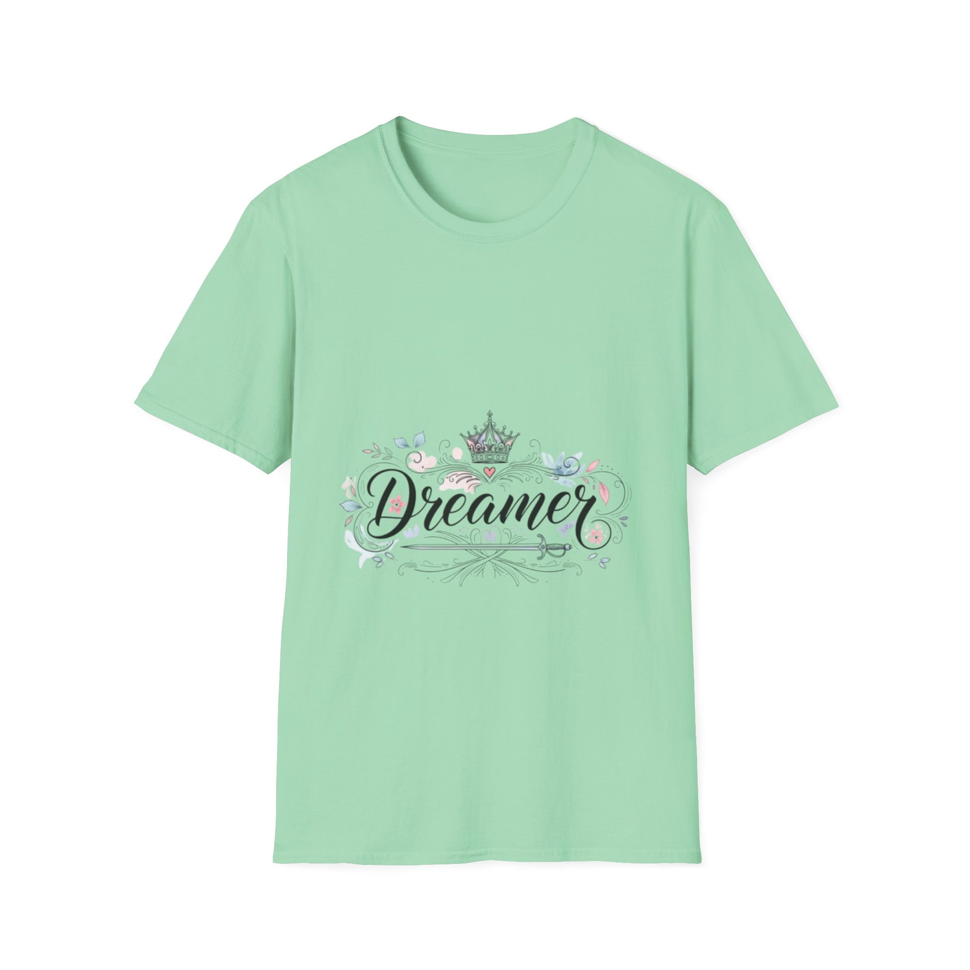 Dreamer t-shirt with unique design. This softstyle t-shirt is perfect for those who love to express their creative side and stand out in a crowd. It is ideal for casual everyday wear or as a statement piece for special occasions. The unisex design makes it suitable for adults of all ages.
