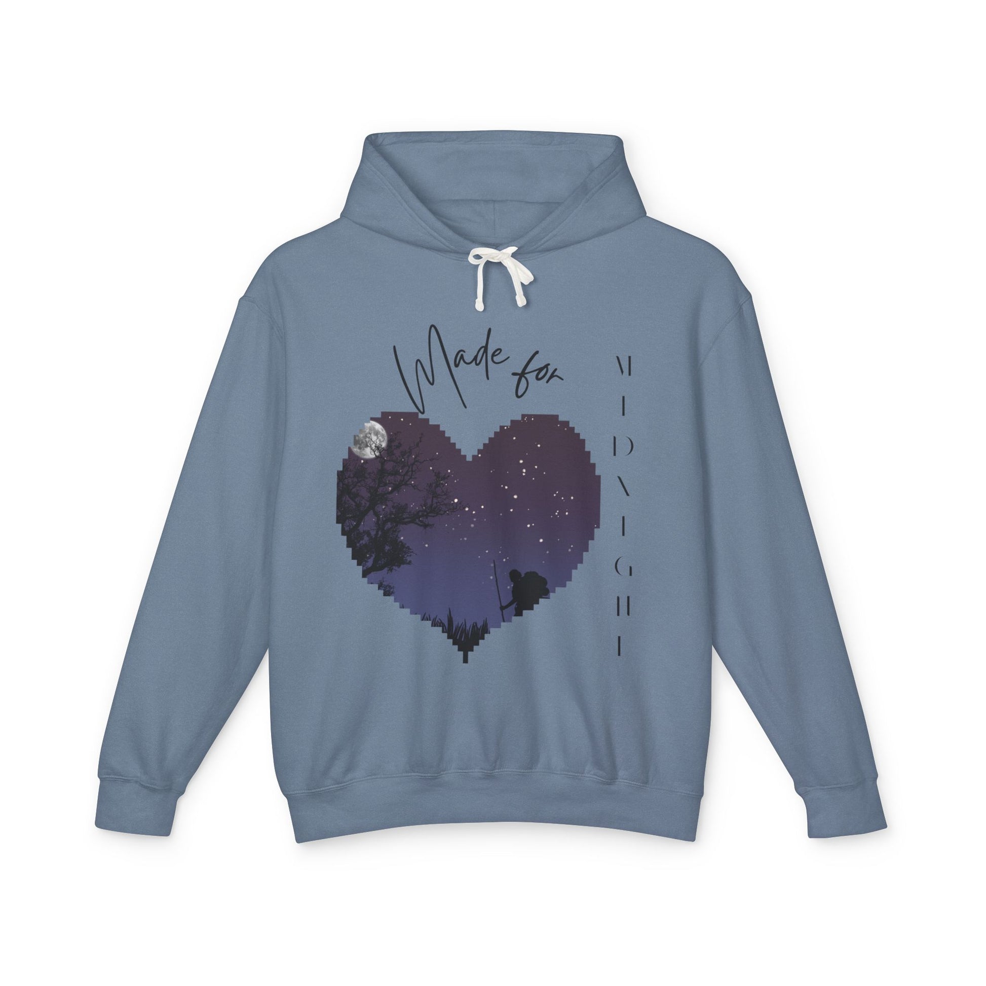 Cozy meets chic in this lightweight hoodie, featuring a celestial heart design that captures the magic of midnight skies. Perfect for stargazers, dreamers, and anyone who loves effortless comfort.